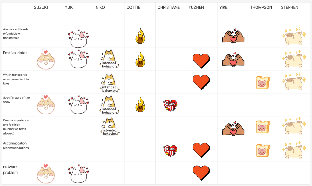 Sampling ten people as the user research base, the survey results show that most Asians are very concerned about the problem of the site network, for the high degree of dependence on mobile phones; a part of the people because they want to sell concert tickets to earn profits from it, so for the transfer of the ticket options are more concerned; a small part of the people do not want to participate in their own, belong to the accompaniment of a friend or a couple, their own does not care about the site of the A small number of people did not want to attend by themselves, but were accompanying friends or couples and did not care about the details of the venue themselves, mostly about housing and transport.