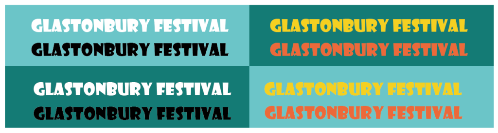 As glastonbury festival is one of the largest music festivals in the world, I used a lot of music elements in the logo design, adding and circus and pop music text, at the same time, the triangle above the logo text is also one of the symbols of the festival, which is a miniature of the whole stage.