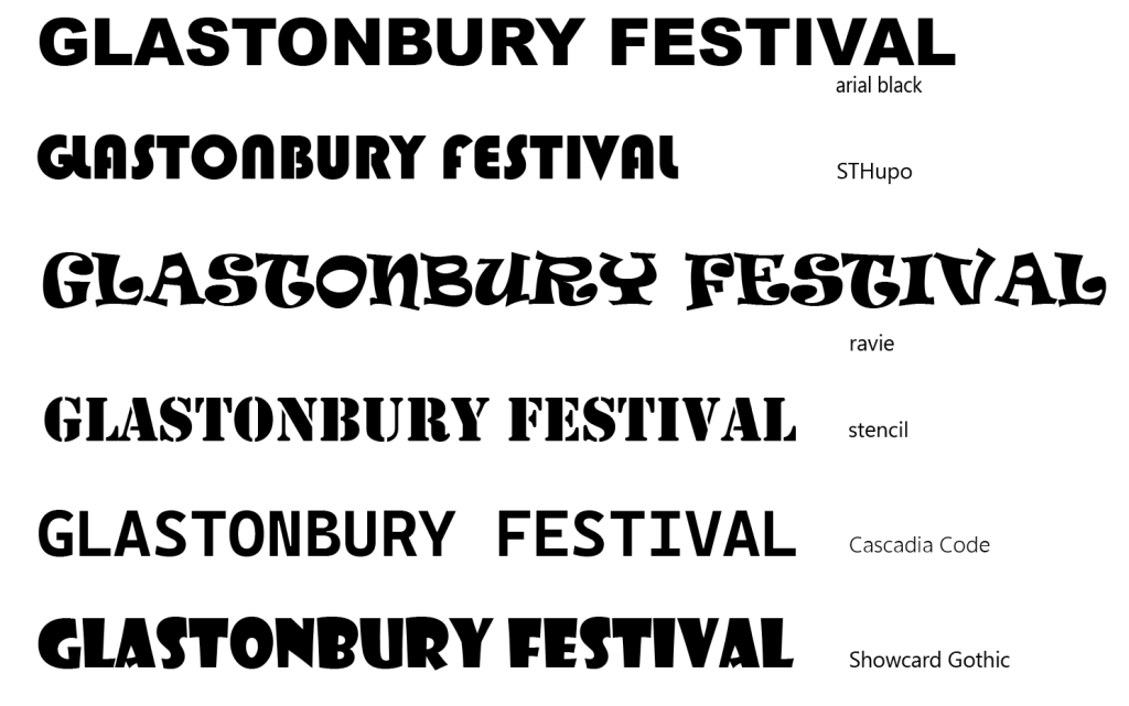 Showcard Gothic———The highly expressive and decorative text, with its distinctive visual style, can create a unique sense of atmosphere in a music festival.