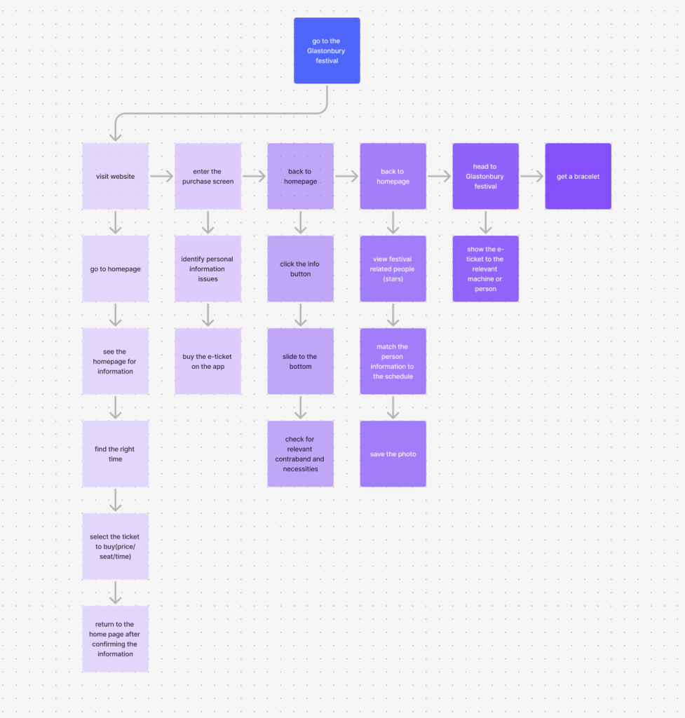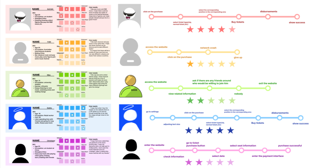 We conducted extensive research on the music festival, covering aspects such as personal preferences, user needs, and personal information. We sorted and categorised the data and created the following user journey map.