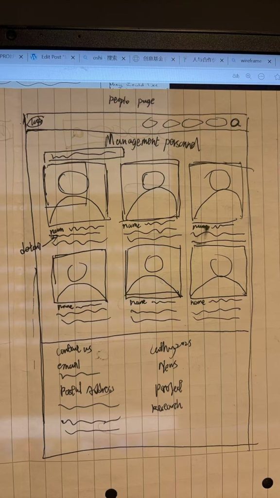 This page serves as my people page. I envision that through this page, users can clearly identify management and staff members, conveniently access each individual’s position and contact information, and accurately understand their professional capabilities and personal details.I plan to arrange personal photos horizontally to maximize space efficiency and facilitate easier user searches. Personal information will be simplified, but users can click “more” to view detailed profiles when needed. This allows users to effortlessly locate the appropriate staff member for inquiries.